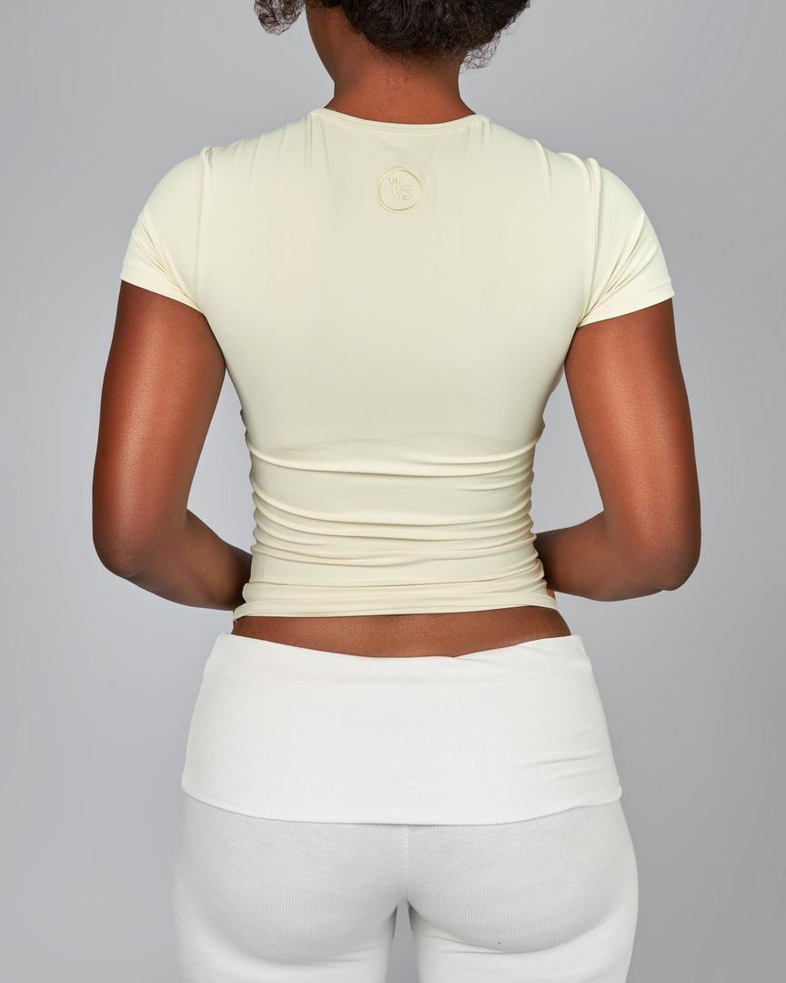 This top gives you that second-skin feel you’ll want to live in. The smooth, lightweight fabric stretches effortlessly, with a fitted silhouette, hugging your curves in all the right places. With clean stitching details at the sleeves and hem, and a length that hits right at the waist. Whether you’re lounging, lifting, or just living your day.
